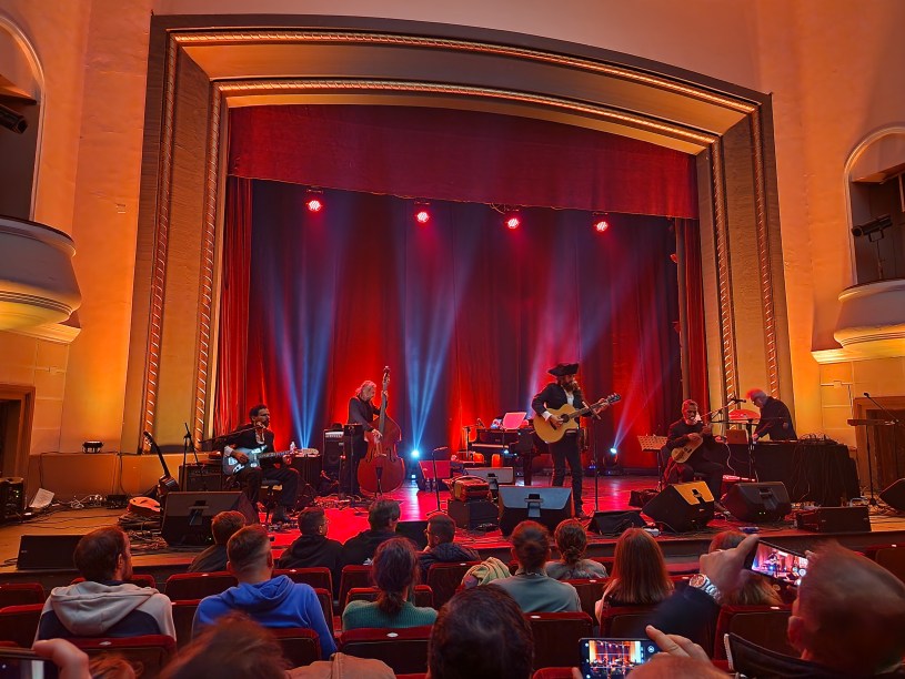 Koncerti i Capossela-s zgjati për gati dy orë në teatrin “Migjeni”, i cili sonte do të hapë sërish dyert për premierën e komedisë “Zhurmat përtej skenës”.