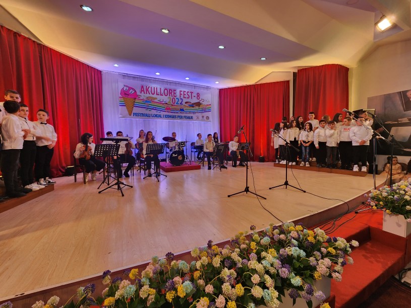 Si një festë e vërtetë ishte atmosfera që krijuan fëmijët artistë dhe të rinjtë pasditen e djeshme në sallën e koncerteve “Gjon Kapidani” të shkollës artistike “Prenkë Jakova” me festivalin lokal të këngës për fëmijë “Akullore Fest” teksa në skenë u ngjitën artistët e vegjël për të kënduar para publikut të pranishëm që kishte ardhur për t’i ndjekur.