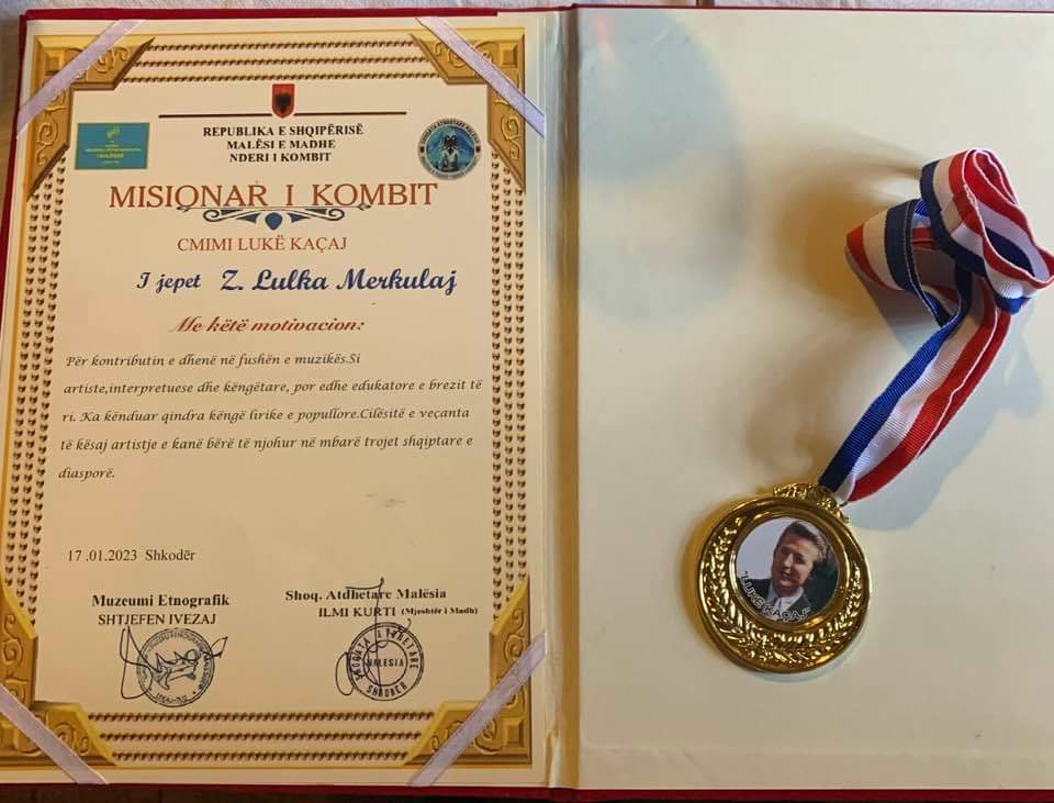 Këngëtarja e njohur e trevave të veriut Lulka Merkulaj është vlerësuar së fundmi me çmimin prestigjoz “Lukë Kaçaj”, një çmim që ia konfirmon edhe më shumë vlerat dhe talentin që prej vitesh përcjell me këngët e saj.
