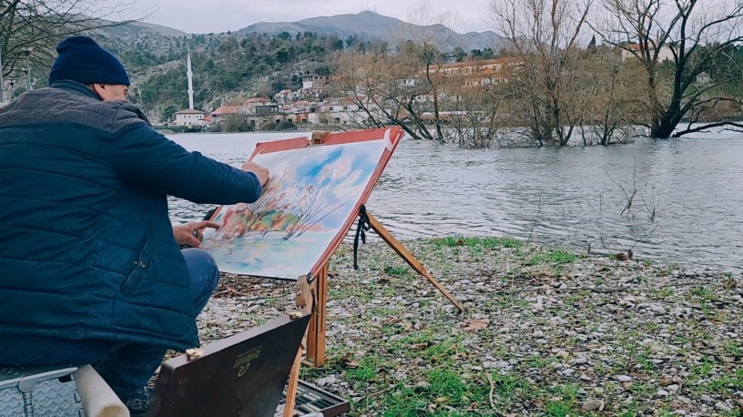 Në një kohë që e gjithë vëmendja duket se është fokusuar tek situata me përmbytjet, në Shkodër ka gjithnjë vend për artin e dashurinë për të, njëjtë si në rastin e Fatmirit që ka dalë të sodisë peisazhin pranë shëtitores së molos e të hedhë pamjen e bukur në telajon e tij.