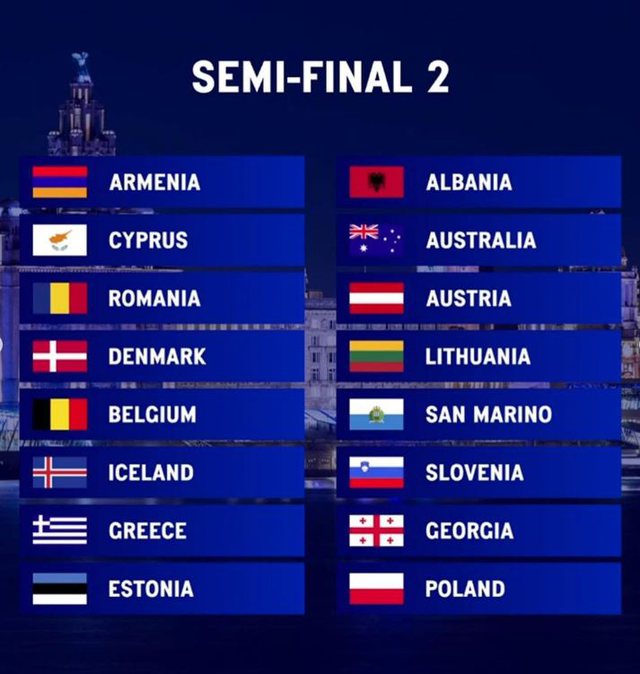 Shqipëria do të jetë në gjysmëfinale me Armeninë, Qipron, Danimarkën, Estonin, Greqinë, Islandën, Rumaninë, Australinë, Austrinë, Gjeorgjinë, Lituaninë, Poloninë, San Marinon dhe Slloveninë.