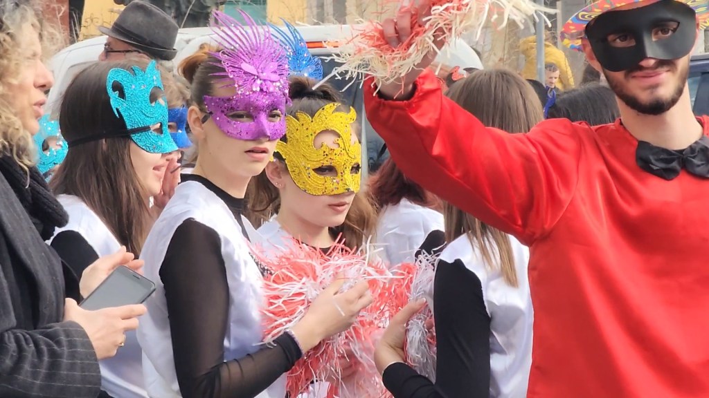 Karvani i karnevaleve nisi para teatrit “Migjeni” për të vijuar me ndalesa nëpër rrugët dhe lagjet e ndryshme të qytetit ndërsa të rinjtë e veshur me maska ja shtonin bukurinë festës.