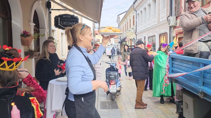 Karvani i karnevaleve nisi para teatrit “Migjeni” për të vijuar me ndalesa nëpër rrugët dhe lagjet e ndryshme të qytetit ndërsa të rinjtë e veshur me maska ja shtonin bukurinë festës.