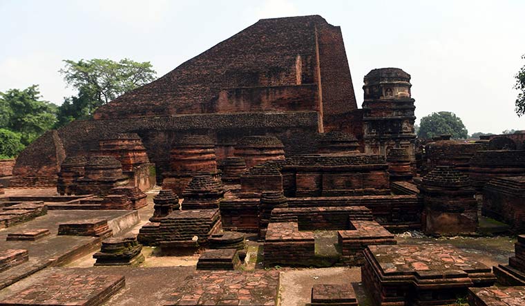 Mbetjet arkeologjike të Nalandës janë tashmë një vend i Trashëgimisë Botërore të UNESCO-s. Në vitet 1190, universiteti u shkatërrua nga një trupë plaçkitëse pushtuesish të udhëhequr nga gjenerali turko-afgan Bakhtiyar Khilji. Kampusi ishte aq i madh sa zjarri i ndezur nga sulmuesit thuhet se u dogj për tre muaj me radhë. Megjithatë, ky nuk ishte sulmi i parë ndaj Nalandës, pasi ajo u sulmua nga hunët në shekullin e 5-të, dhe përsëri pësoi dëme të rënda nga një pushtim i mbretit të Bengalit, Gauda, në shekullin e 8-të.