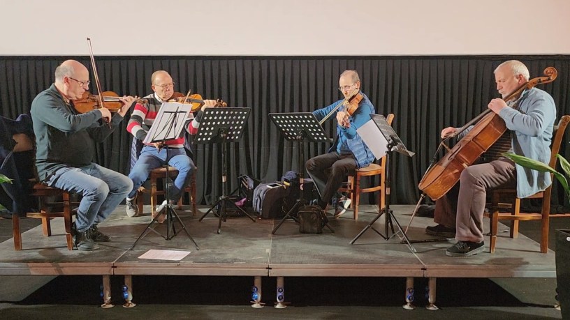 Kuarteti i harqeve “ILA ’74” i përbërë nga anëtarët Vangjush Papadhimitri dhe Zeqir Sulkuqi në violinë, Ilo Kanani në violë dhe Kostika Tanto në violonçel po bëjnë përgatitjet e fundit në prag të koncertit që do të mbahet në kinema “Millennium”.