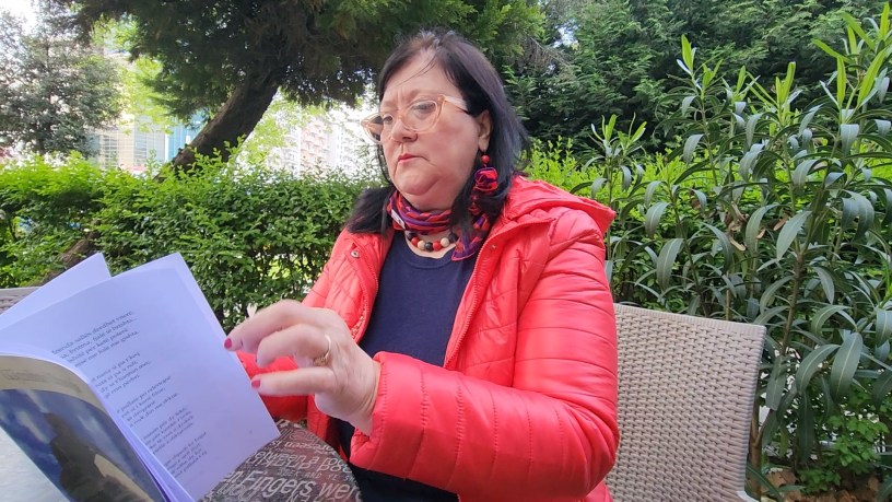 Angjela Vasija është bija e aktorit të shquar të humorit Gjosho Vasija. Prej vitesh jeton në Itali por këto ditë ndodhet në Shkodër. Ka ardhur për të dhuruar librin “Zani i emigrantit”, një botim me vargje gazmore të shkruara prej Gjosho Vasisë.