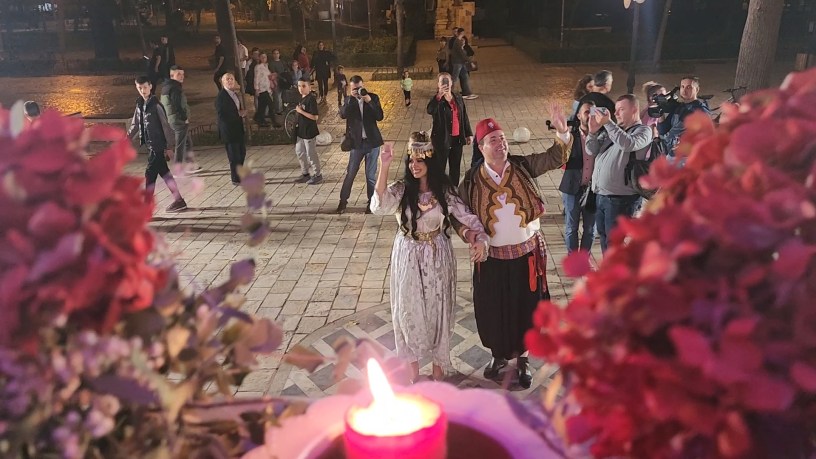 Në rolin e çiftit dhe ahengxhijve të dasmës ishin artistët e qytetit, pjesë e QK “Pjetër Gaci” të cilët sollën atmosferën e një dasme tipike shkodrane ku nuk mungonin as elementët e pajës apo gostisjes me embëlsirat tradicionale.