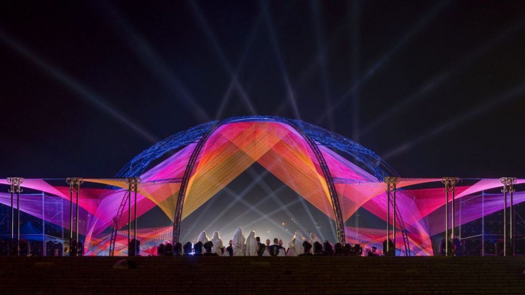 Përshkueshmëria e instalimit, e cila lejon që drita të filtrohet përmes litarëve, rrit ndërveprimin dinamik midis skenës dhe prapaskenës, duke krijuar një përvojë vizuale gjithëpërfshirëse që ndryshon gjatë gjithë ditës.