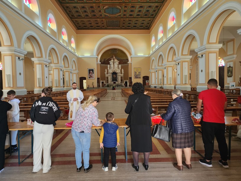 Një ditë para festës së Pashkës, besimtarët katolikë të Shkodrës u janë drejtuar kishave të qytetit për të bekuar shportën me ushqimet që përmban buka e Pashkës. Ky proçes nisi nga ora 9 e mëngjesit dhe zgjati deri në orën 12 të mesditës.