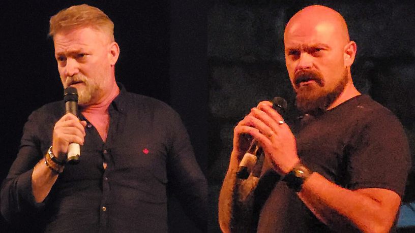 Teatri “Migjeni” ishte stacioni i radhës i Stand up komedi bar të dy protagonistëve Gent Hazizi dhe Besnik Mustafaj. I pari solli “Krejzi Brother” ndërsa i dyti “Më fal o Atë se nuk di ç’them”.