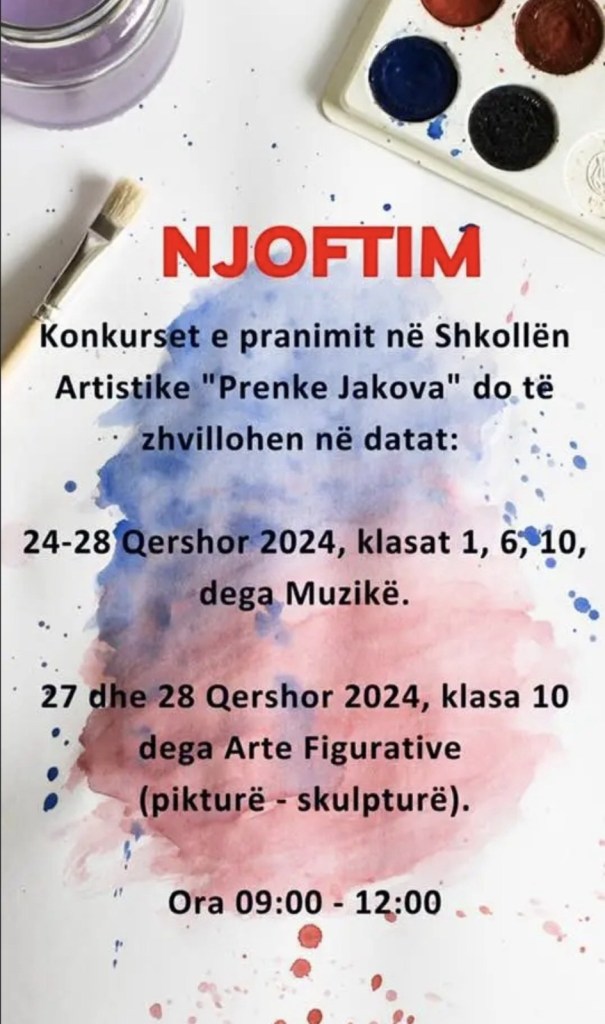 Në shkollën artistike “Prenkë Jakova” kanë nisur të përgatiten për vitin e ri shkollor më herët se vitet e tjera. Kjo pasi shkolla po zhvillon konkurset e pranimit në degët e saj.