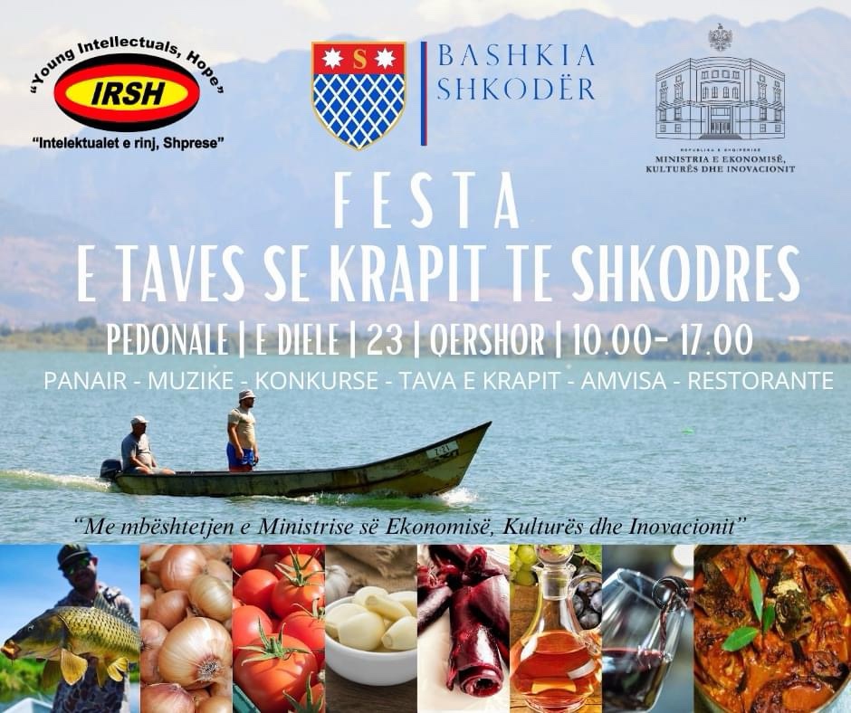 “Festa e tavës së krapit të Shkodrës” do të jetë risia e organizimeve dhe aktiviteteve të këtij sezoni veror në qytetin e Shkodrës. Shiroka, lagjia liqenore e Shkodrës është vendi perfekt ku preferohet të konsumohet kjo pjatë tradicionale e kësaj treve por festa do ta sjellë tavën e krapit brenda në qytet, pikërisht në zonën muzeale ku do të mbahet përgjatë gjithë ditës së 23 qershorit një atmosferë festive. Ajo ka për qëllim promovimin e traditave të kulinarisë së Shkodrës dhe një prej tyre është tava e krapit. Organizatorët kanë publikuar programin e plotë të festës që zhvillohet për herë të parë në qytet.