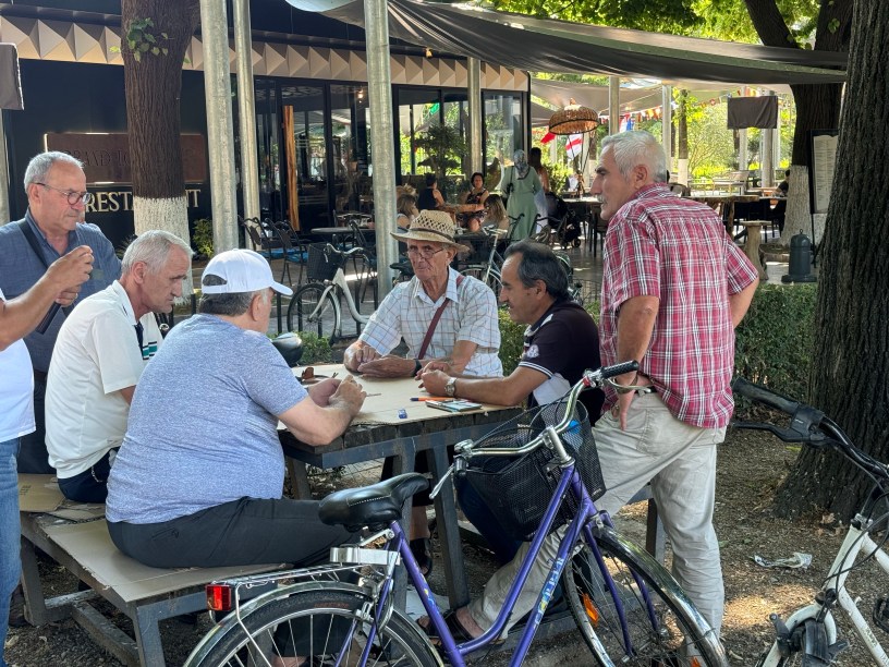 Kjo hapësirë pranë sheshit të shatërvanit në Shkodër është këndi i preferuar i moshës së tretë. Dalin aty çdo ditë herët në mëngjes dhe nën freskinë që krijojnë hijet e pemëve të larta luajnë lojën e tyre të preferuar të Dominosë.