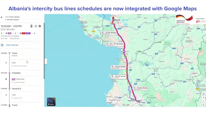 Informacioni i transportit publik në të gjithë Shqipërinë është tashmë në përputhje me GTFS, një standard global i të dhënave.