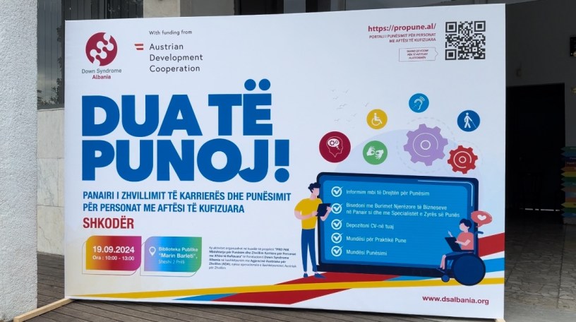 Në hollin e Bibliotekës “Marin Barleti”, këtë të enjte u çel panairi i zhvillimit të karrierës dhe punësimit për personat me aftësi të kufizuara (PAK) “Dua të punoj”. Organizimi i tij nga Fondacioni “Down Syndrome Albania” në bashkëpunim me Agjencinë Austriake për Zhvillim realizohet për herë të parë në kryeqendrën e veriut të vendit. Panairi rrit mundësitë e punësimit për PAK.