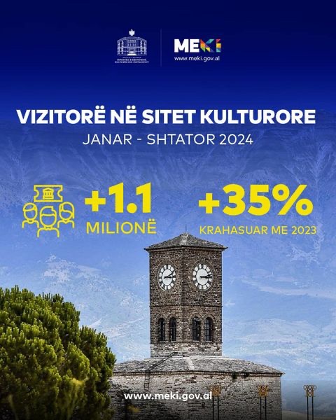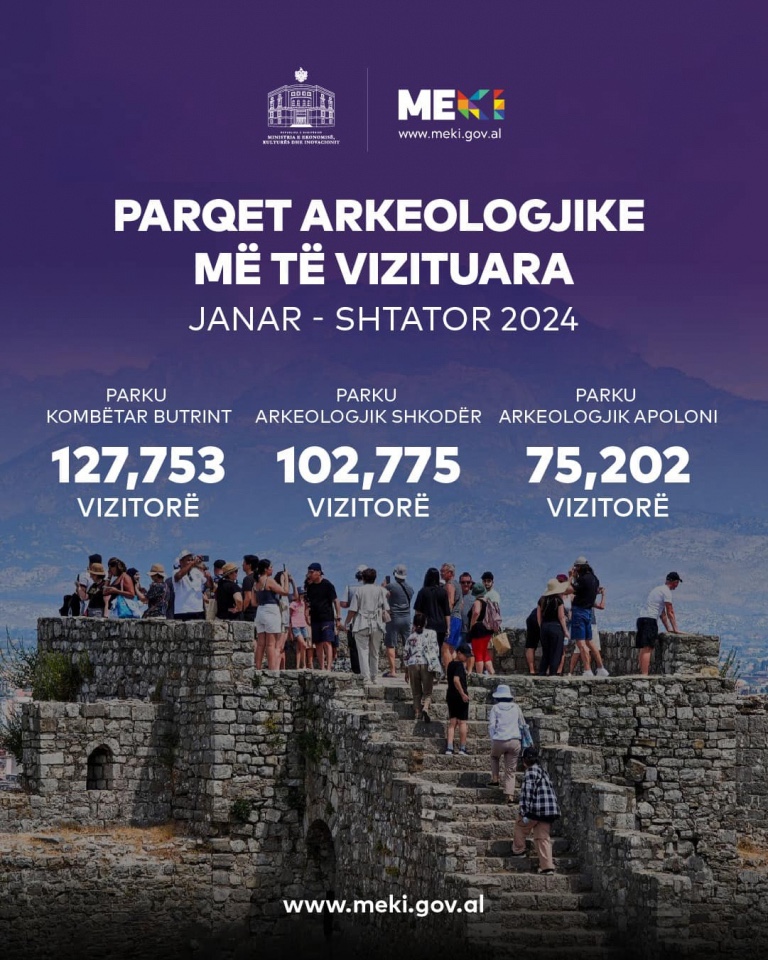 Ministri i Ekonomisë, Kulturës dhe Inovacionit, Blendi Gonxhja, ka publikuar shifrat të cilat flasin qartë për rritjen e vizitueshmërisë që nga kalatë madhështore, muzetë plot histori, e deri tek parqet arkeologjike që magjepsin çdo vizitor.