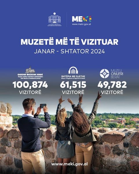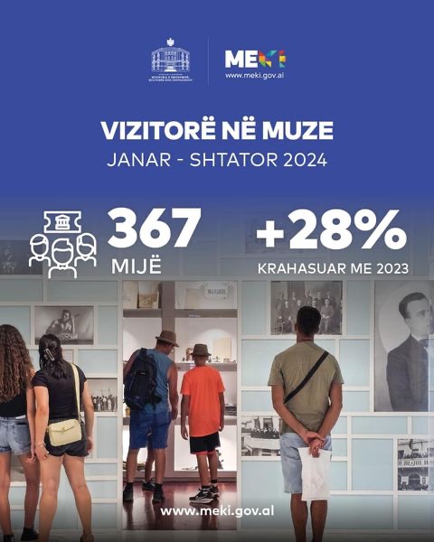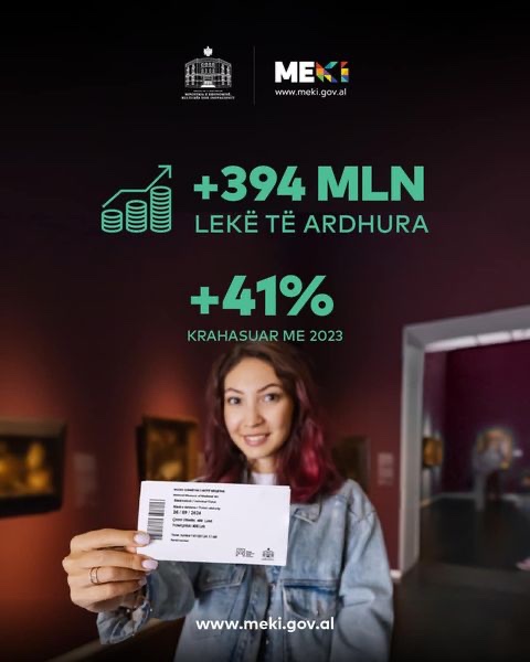 Kjo vizitueshmëri e lartë, përkthyer në shifra shkon në 394 mln lekë të ardhura, rreth 41% më shumë se në 2023. Nga 367 mijë vizitorë të muzeve, shumica e tyre preferuan Qendrën Muzeore Krujë, Muzeun “Shtëpia me gjethe” dhe Qendrën e Muzeumeve Berat.