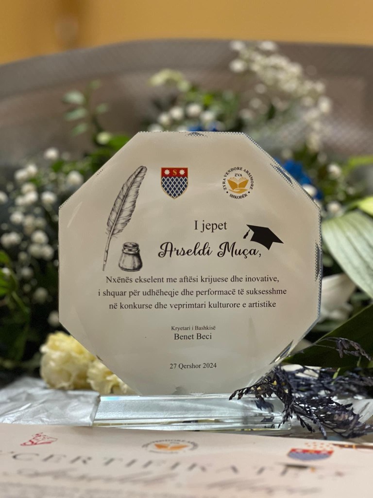 Dekoruar si një nga tre ekselentët e qytetit për performancën e tij jashtëshkollore dhe akademike, Arseldi vazhdon të frymëzojë, duke ndjekur studimet në Politeknikun e Torinos, Itali.