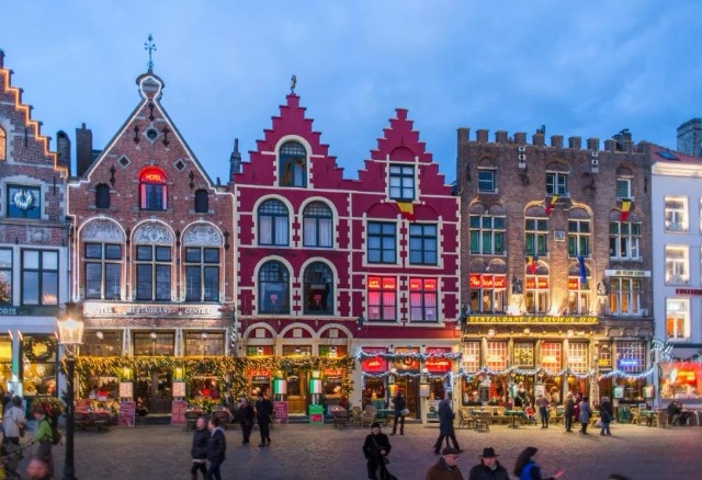 I mbushur me arkitekturë mesjetare, rrugë me kalldrëm, Bruges është më i bukuri gjatë sezonit festiv. Qendra mesjetare e Bruges, e mbrojtur nga UNESCO, është e mbushur me ndërtesa që ngjajnë me shtëpitë e xhenxhefilit në filmat vizatimorë të zbukuruara me drita. Ka dy tregje Krishtlindjesh dhe një shesh patinazhi lundrues në Liqenin e Dashurisë.