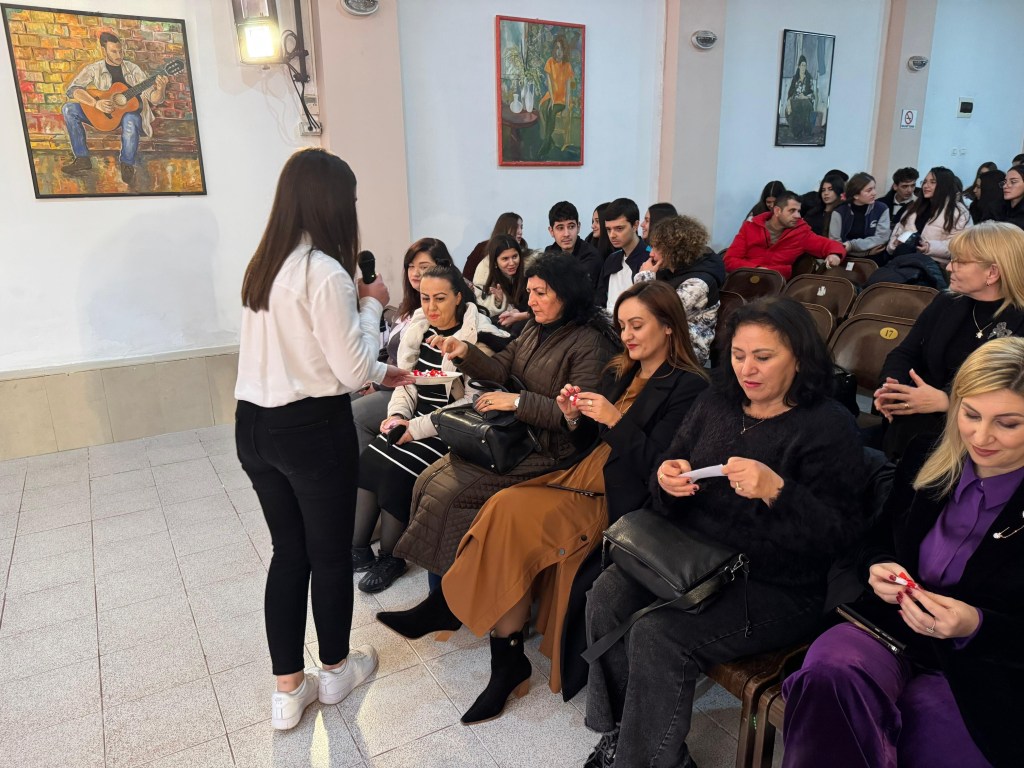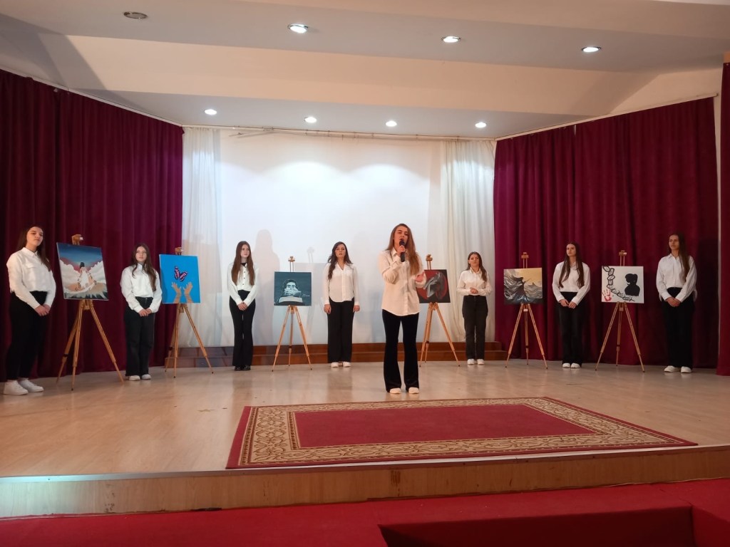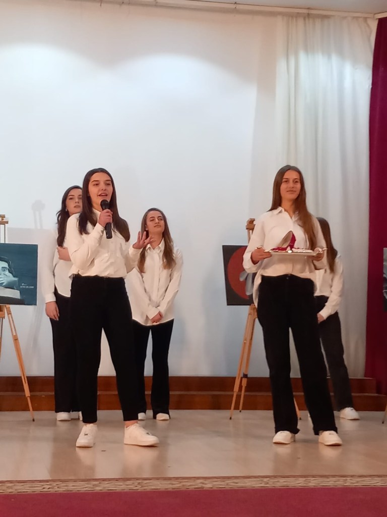 Monologu me titull “Thyej heshtjen”, recituar me shumë ndjenjë nga nxënësja Zerina Uraj, klasa XIIB, u pasua nga kërcimi artistik dhe recitimi i poezisë “Shoqja e jetës sime”, me autor Nazim Hikmetin, prej nxënëses së talentuar Esmira Buhaj, klasa XIIA, nxënëse këto të cilat kishin edhe rolin e prezantueseve të krejt performancës së shkollës sonë.