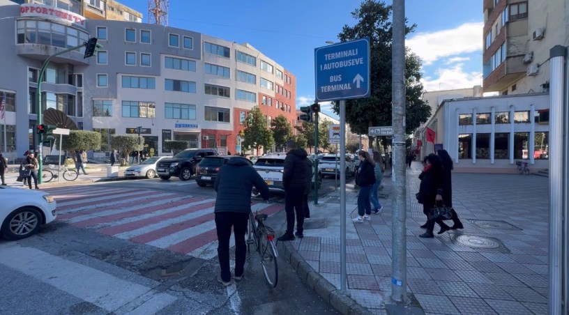 Kjo është një prej tabelave orientuese të vendosura në qendër të qytetit, pranë Postës, në Bulevardin “Skënderbeu”. Në të shkruhet “Terminali i Autobusëve” dhe drejtimi i saj të çon drejt stacionit hekurudhor. Në një situatë të tillë ose duhen udhëzuar qytetarët që të shkojnë drejt stacionit për të marrë autobusin ose duhen hequr tabelat.