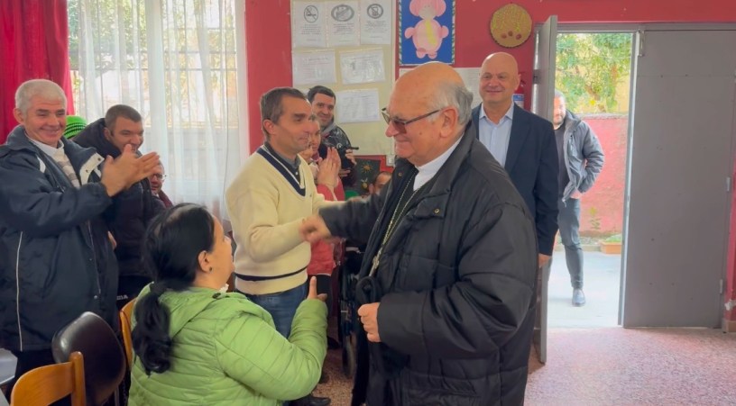 Duartrokitjet e shoqëruan gjatë Imzot Massafra-n sapo hyri brenda. Ishin ndryshe nga çdo herë tjetër. Bartnin falenderimin e përzemërt të 25 viteve bashkëpunim. Fëmijët dhe të rinjtë, jetimë biologjikë apo socialë me aftësi të kufizuara të Qendrës së Përkujdesit Rezidencial “Projekti Shpresa” ishin aty, për takimin përshëndetës me ish-Arqipeshkëvin e Dioqezës Shkodër-Pult.