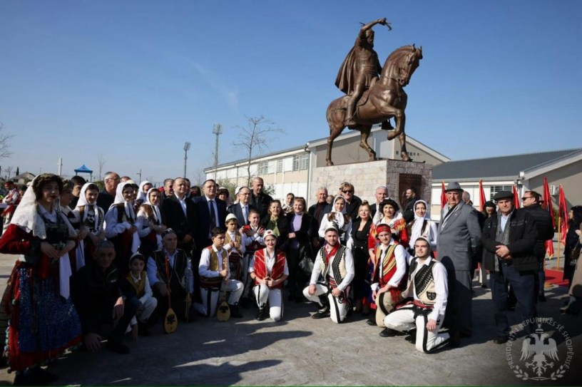 Presidenti Begaj vendosi një kurorë me lule në monumentin e Skënderbeut, të vendosur në këtë shesh më 28 Nëntor të vitit të shkuar për festën e flamurit dhe u përshendet me qytetarët.