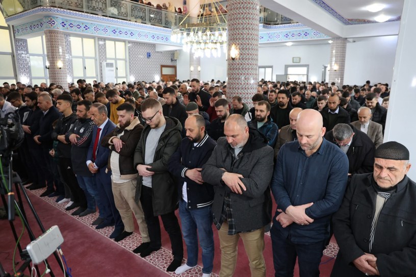 Pas faljes, besimtarët shkëmbyen urime me njëri-tjetrin, në një atmosferë festive.