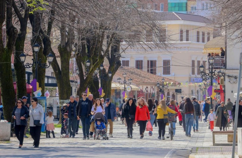 Familjarë, të rinj e të moshuar po shfrytëzojnë këtë ditë pushimi për të bërë një shëtitje pranverore në pedonalen e qytetit apo kënde të tjera.