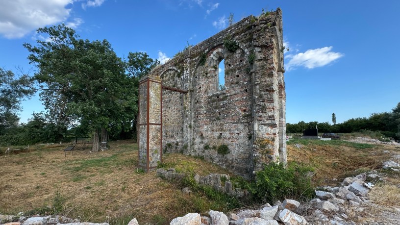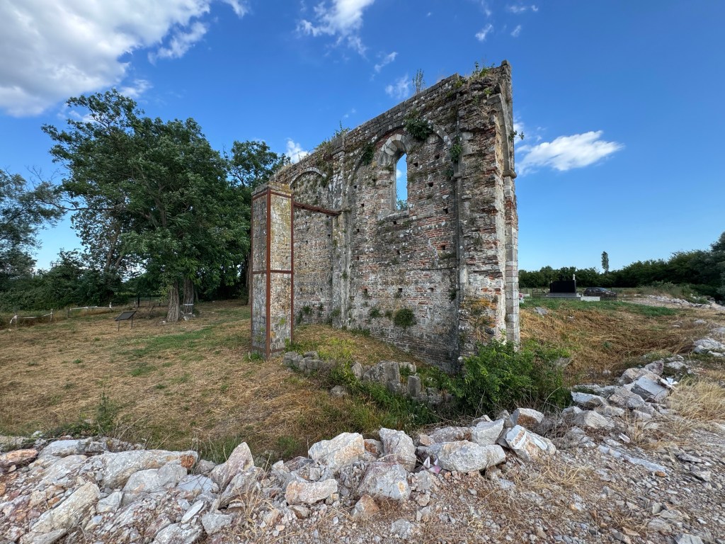 Megjithëse nga kjo kishë kanë ngelur disa fragmente, ato janë të mjaftueshme edhe për të përcaktuar datën dhe ndërtuesit e kishës. Interpretimi i dy shkrimeve të Helenës dhe Milutinit lënë për të kuptuar se kisha kishte filluar të ndërtohej nga Helena dhe të bijtë në vitin 1290 dhe kishte përfunduar po nga ata në vitin 1318. Por supozohet se Helena pati bërë një rikonstruksion/ rindërtim të një kishe paraekzistuese, e cila është e besueshme t’i ketë përkitur kohës së Justinianit, kur kulti i Sergjit dhe Bakut martirë u përhap në Siri, Arabi, Irak, Kostandinopojë, Peloponez, Maqedoni etj.