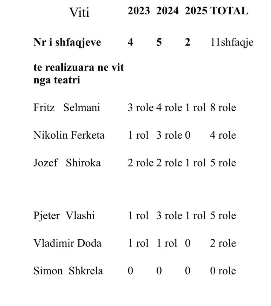 Por e vërteta është krejt e ndryshme nga ky përdorim politik tipik. Sepse faktet janë në tetarin e shfaqjeve sipas viteve, aty ku shihet se sa ka shkelur në skenën e teatrit secili aktor i “Migjenit”.