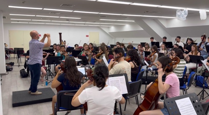 Në ambientet e brendshme të Stadiumit “Loro Boriçi”, një formacion muzikor prej rreth 60 të rinjsh nga vendet e Ballkanit Perëndimor po përgatiten për koncertin që do të mbahet mbrëmjen e datës 4 gusht në sheshin para Bashkisë Shkodër.