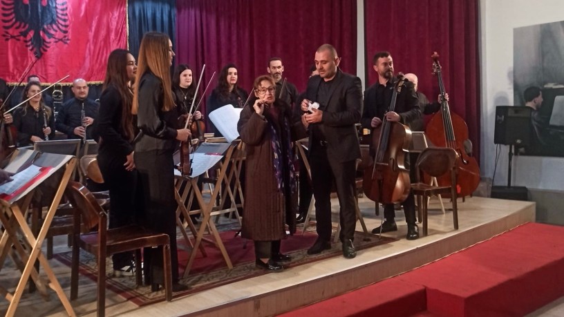 Në program ishte edhe kënga “Për ty Atdhe”, një himn shpirtëror, artistik e patriotik për shqiptarët. Kënga u interpretua me shumë emocion nga bas-baritoni, pedagogu i kantos Lukë Mllugja. Soliste në violinë ishte nxënësja e talentuar Elena Babani, e cila interpretoi me bukuri “Balladën për violinë” të kompozitorit Pjetër Gaci.