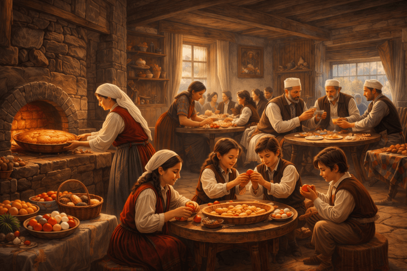 Gjatë Javës së Madhe, nga e hëna deri të shtunën, çdo familje, edhe ajo më e varfra, përgatitej duke mbledhur vezë për të bërë “përpeq”, sipas zakonit të vendit, dhe e konsideronin të detyrueshme që ta përgatisnin dhe ta çonin për bekim në Kishën e Madhe.