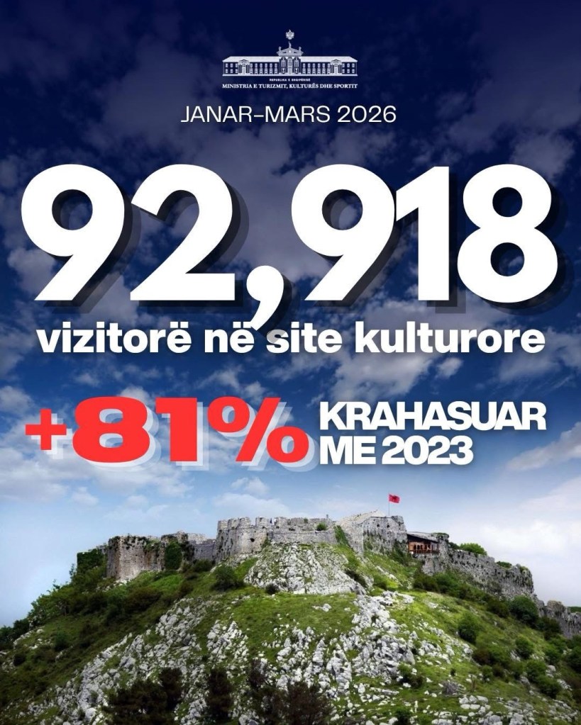 Kalaja e Shkodrës vijon të jetë një nga destinacionet më të preferuara për turistët në vend. Sipas të dhënave të publikuara nga Blendi Gonxhja, gjatë tremujorit të parë të vitit 2026, Kalaja e Shkodrës renditet si siti më i vizituar në Shqipëri, me 16,309 vizitorë.